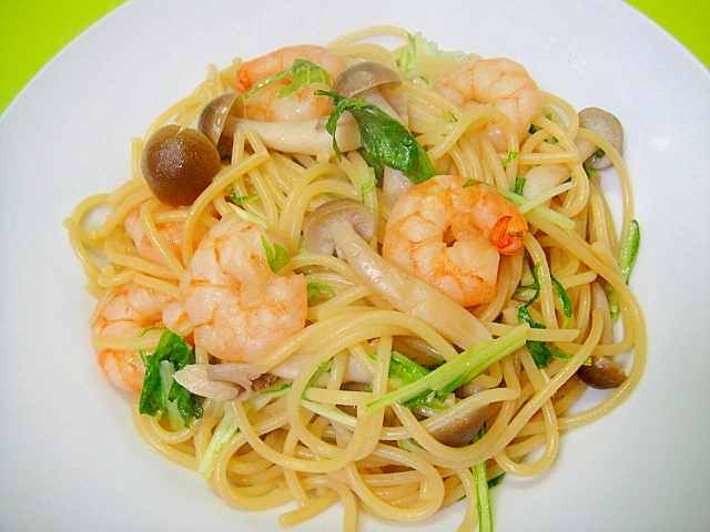 むき海老と水菜の和風パスタ レシピ 作り方 By Mint74 楽天レシピ