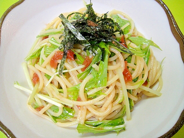 水菜と梅の和風パスタ レシピ 作り方 By Mint74 楽天レシピ